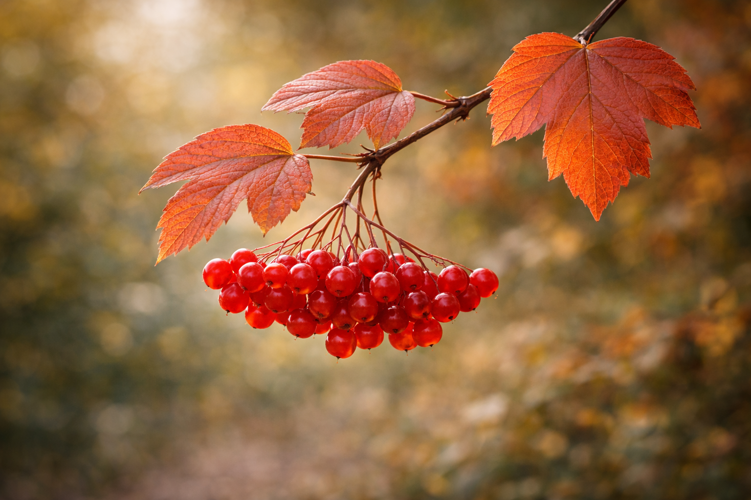 яркие красные ягоды осенью и зимой