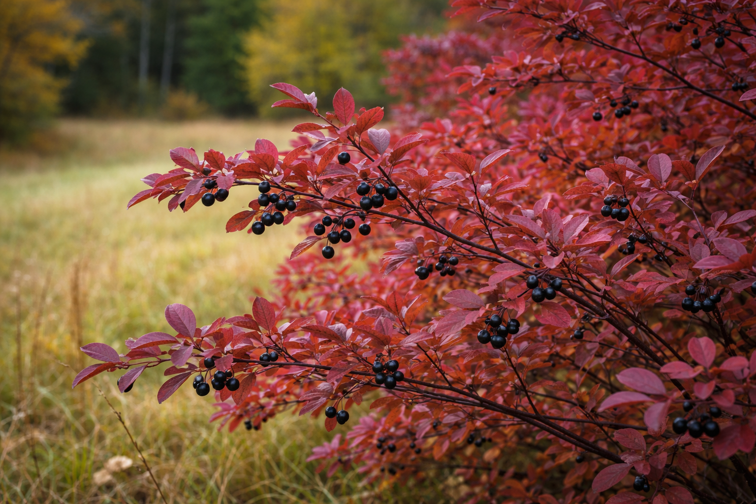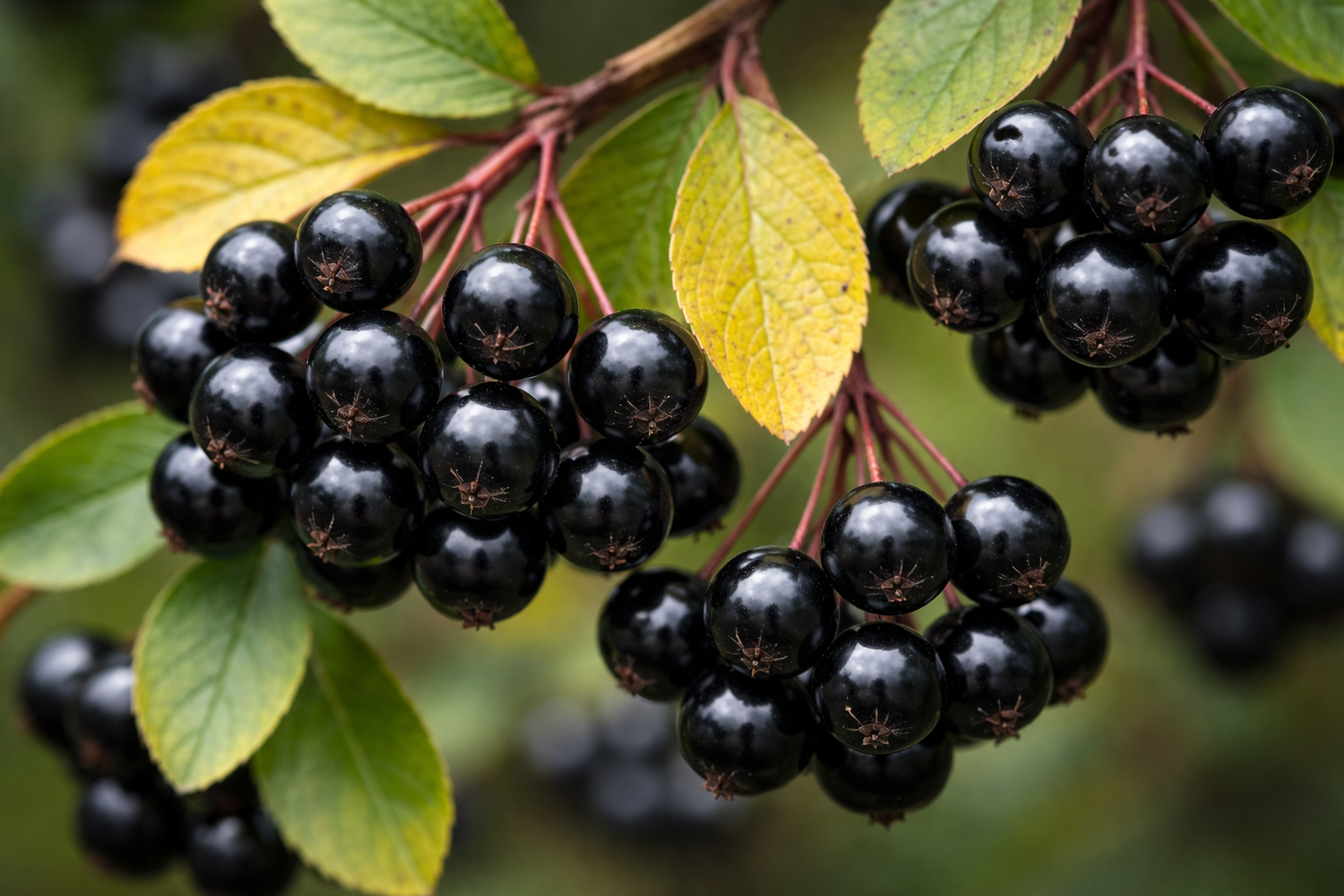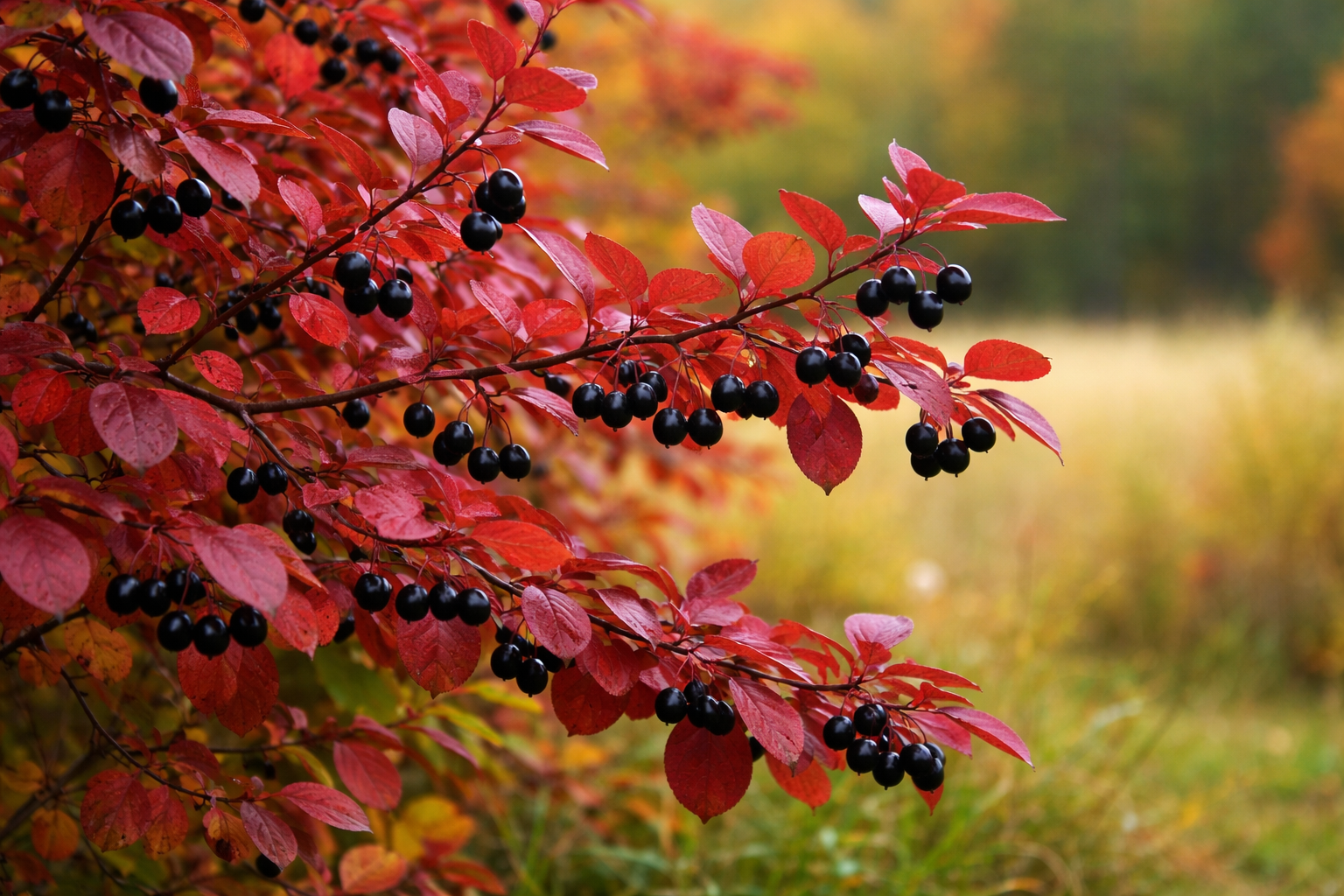 чёрные блестящие ягоды осенью